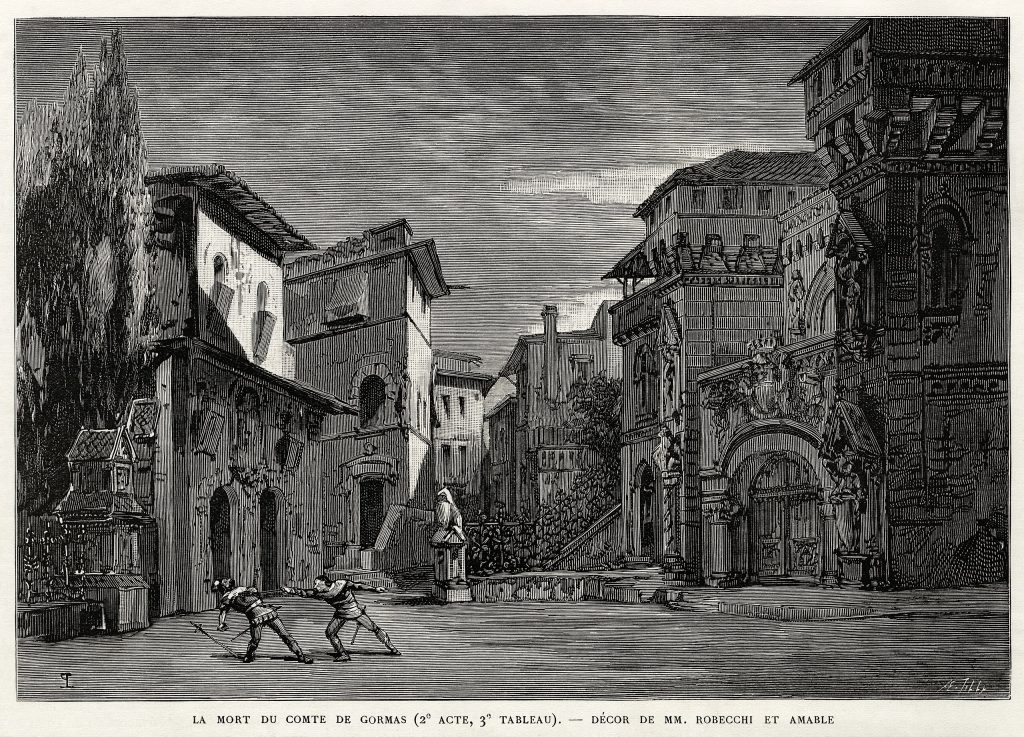 Mais voilà, le livret ne lui convient pas. C’est alors Edouard Blau qui arrive à la rescousse, modifiant sensiblement les équilibres et en particulier le rôle de Rodrigue. Ce dernier devient plus jeune, plus sensible. Mais Massenet n’est pas convaincu au premier abord par ce livret et la composition alterne moment de motivation et d’autres plus difficiles. Il est aussi très exigeant avec ses librettistes (Gallet et Blau, qui semble avoir pris la main sur le projet), allant jusqu’à refaire faire sept fois la scène de la vision! Finalement, le 24 octobre 1884, le travail de composition est terminé et Massenet se lance immédiatement dans l’orchestration entre le 5 novembre et le 13 avril 1885, alternant durant les premières semaines Le Cid et la composition d’un musique de scène pour Théodora de Victorien Sardou avec Sarah Bernhardt dans le rôle-titre. À l’Opéra de Paris, les choses ont changé car Vaucorbeil est décédé, remplacé par Eugène Ritt et Pedro Gailhard. Mais les échanges se passent bien. Depuis longtemps, Massenet avait souhaité retrouver Jean de Reszké dans le rôle-titre. Il avait créé Jean dans Hérodiade au Théâtre-Italien, provoque donc un changement de tessiture : le rôle était prévu pour un baryton et devient donc ténor. Les autres rôles masculins sont distribués au frère de Jean, la basse Edouard de Reské (Don Diègue), Léon Melchissédec créera le Roi et le jeune Paul Plançon sera Gormas. Pour Chimène, c’est finalement la soprano Fidès Devriès qui est choisie et elle sera très active dans des modifications de son rôle, entre autres pour son grand air du troisième acte. La danseuse espagnole Rosita Mauri sera aussi la cause d’une ré-écriture du ballet de l’acte II en mai 1885, en faisant un moment encore plus important qu’auparavant. Mais le doute est toujours là, se référant aussi à l’échec du Polyeucte de Gounod lui aussi inspiré d’une tragédie de Corneille. Son éditeur, présent tout au long de la composition, lui conseillera d’aller se reposer en Hongrie où part Massenet en août 1885. A son retour, il se mêle des décors et particulièrement des couleurs. Avec sa capacité de lier musique et couleur, il fera refaire notamment les décors du dernier tableau du troisième acte : “Je ne puis accepter cela. C’est trop rouge pour mon andante, ou trop bleu pour mon allegro.”. Enfin, le 30 novembre 1885, Le Cid est créé.