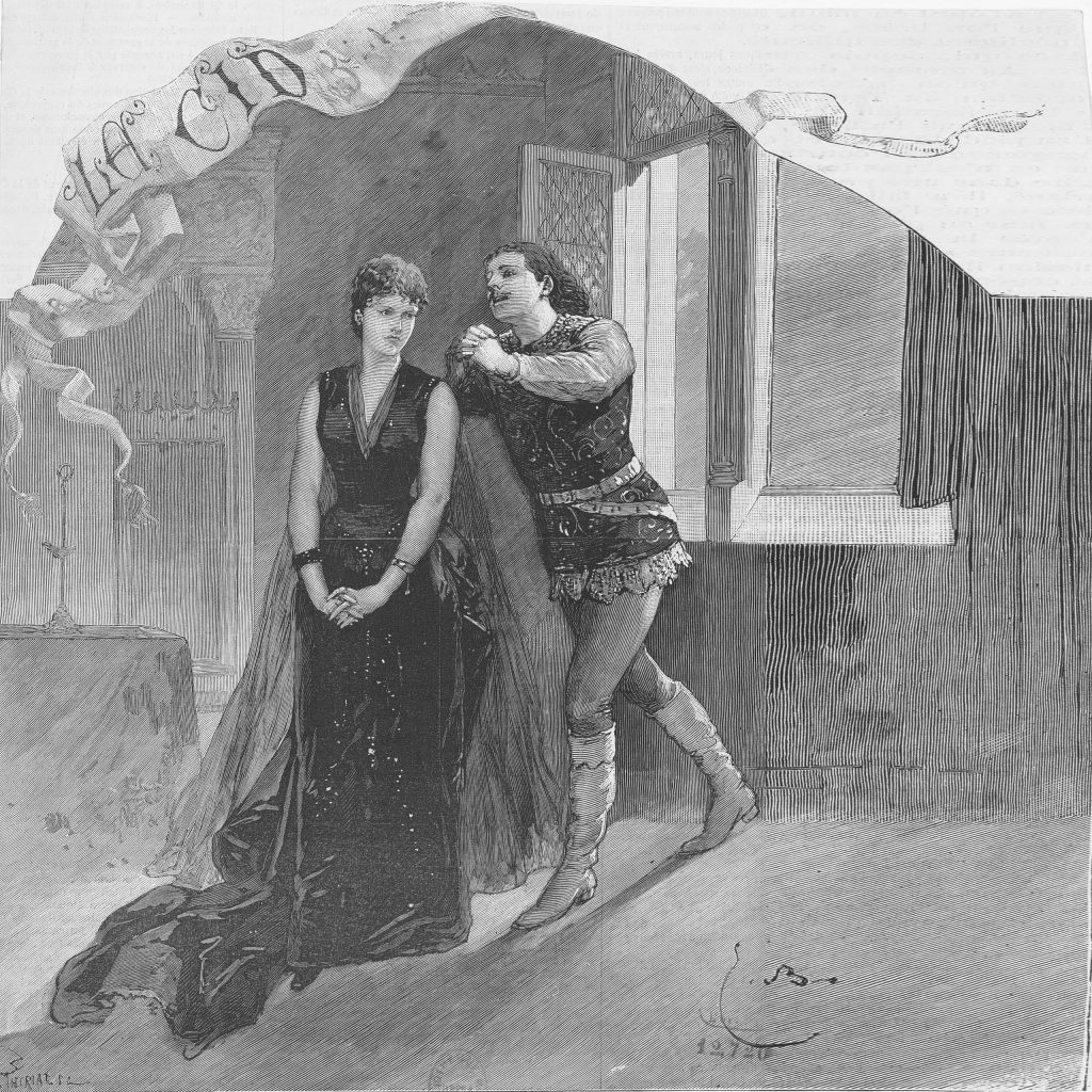 Si bien sûr le livret se base sur la pièce de Corneille, en empruntant d’ailleurs mêmes des alexandrins par moments, il s’inspire aussi d’une pièce de Guillén de Castro (source du premier livret de Gallet) et bien sûr du roman espagnol original, la Gesta de las mocedades de Rodrigo écrit en 1344, recueil de romances autour de Rodrigue Diaz de Vivar, inspiration du fameux Cid. Certaines scènes sont même ajoutées comme la découverte par Chimène du nom de l’assassin de son père au deuxième acte, emprunté à Montalte. Le personnage de Chimène justement doit beaucoup aux souvenirs de Massenet après avoir vu Rosélia Roussel dans ce rôle au théâtre et en fera presque le personnage principal de l’ouvrage.