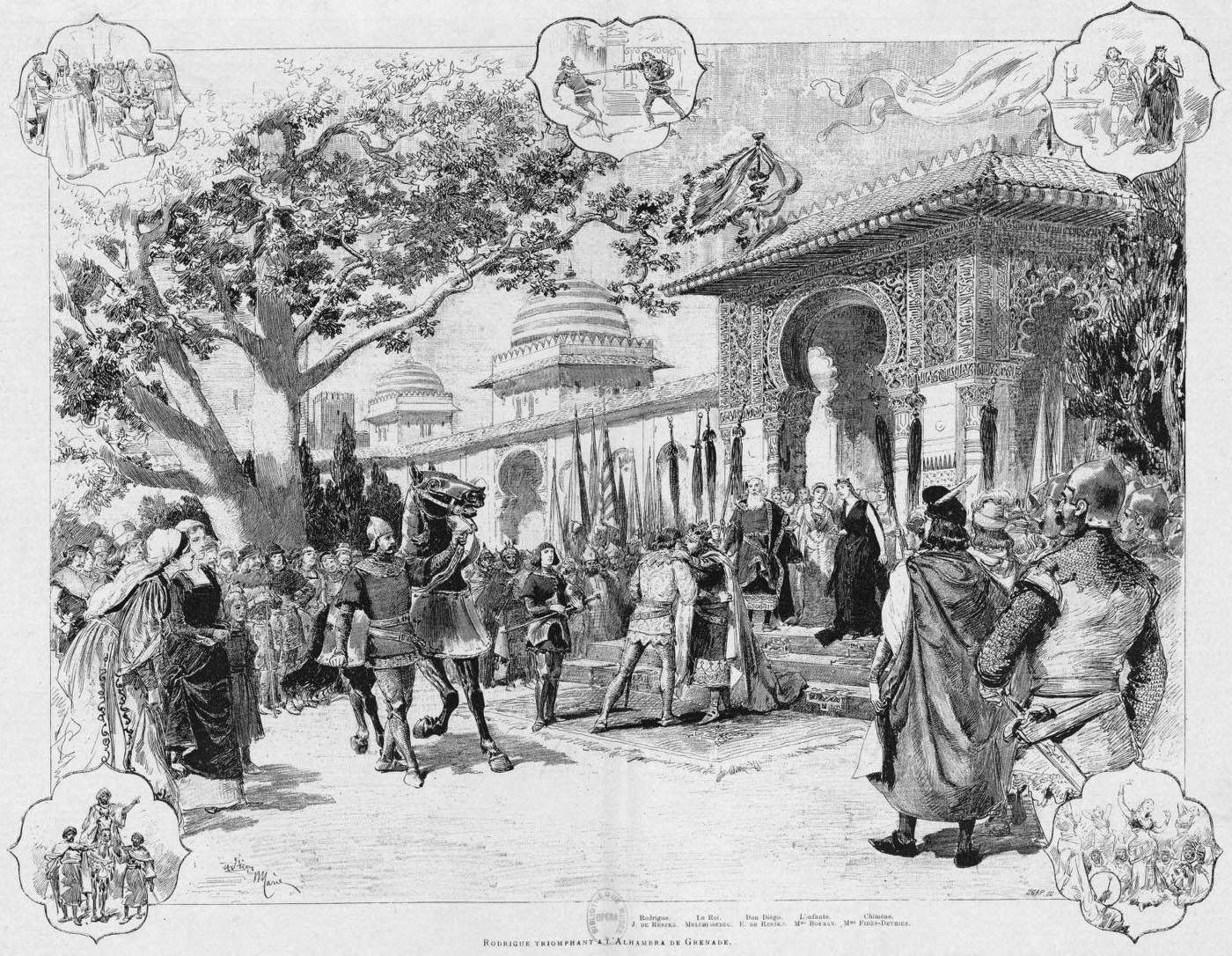 Acte IV.2, Sur la place royale de Grenade – Triomphe de Rodrigue (décors de Jean-Baptiste Lavastre – 1885).